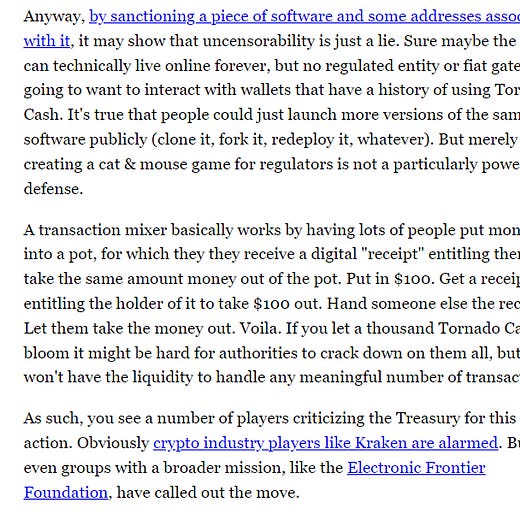 Read more: Analysis: What is and what is not a sanctionable entity in the Tornado Cash case